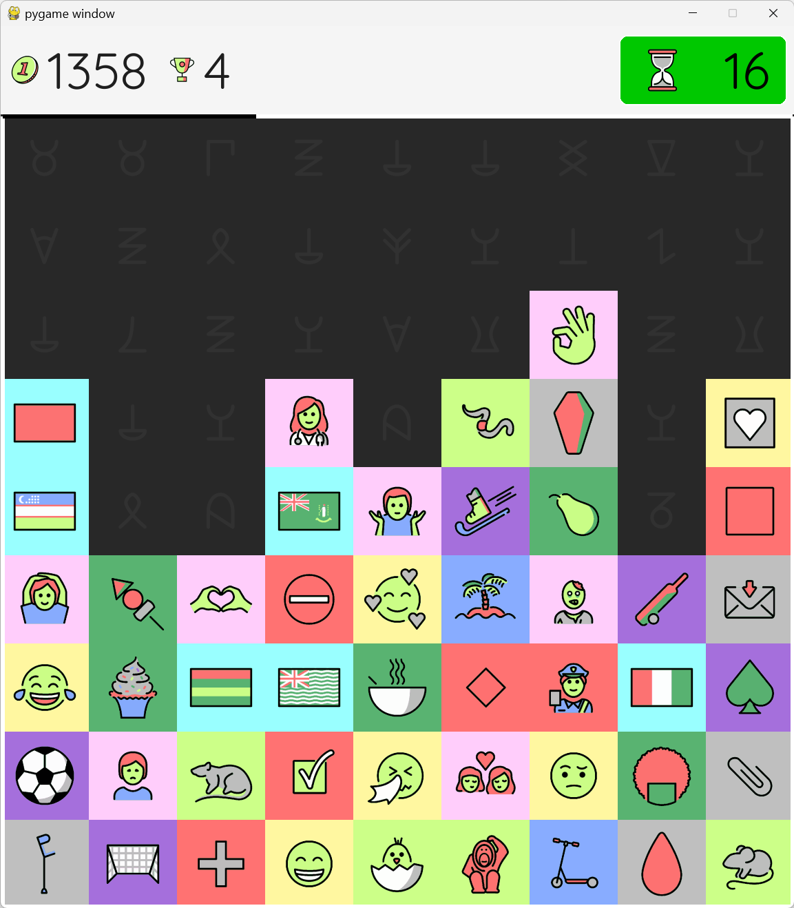 Emojis are universally loved yet invisibly organized and inconsistently grouped. However, EmoToon turns that frustration into fun. It’s a tile‑based arcade game blending the best bits of Tetris, Connect Four, and Candy Crush, built with PyGame for Windows.
